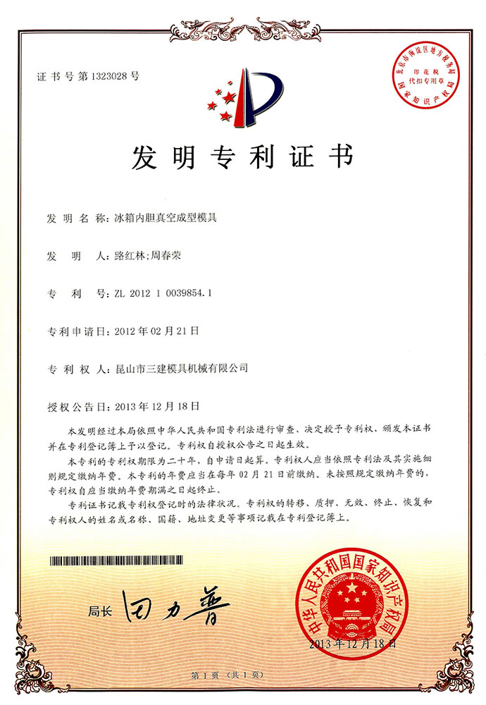 昆山市三建模具機械有限公司 創(chuàng)建于1996年,是一家研發(fā)生產電冰箱模具(電冰箱門、箱真空成型吸塑模、沖孔切邊模、